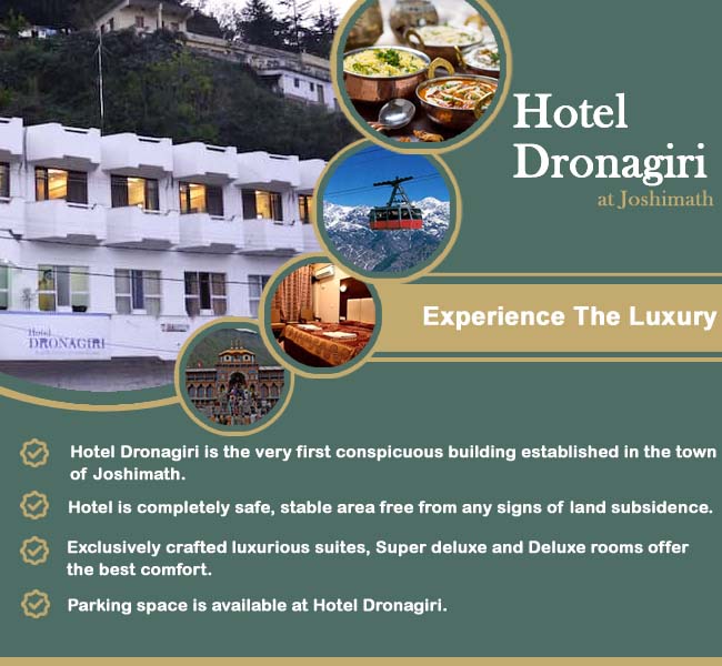 The very first conspicuous building is that of Hotel Dronagiri. Here the most ancient and the modern mingle to let you experience the peace and tranquility, that raises the soul to the spiritual ecstasy. Once having placed yourself at Joshimath under our hospitable touch, you have a choice to plan your own schedules for the day of stay at our Hotel.